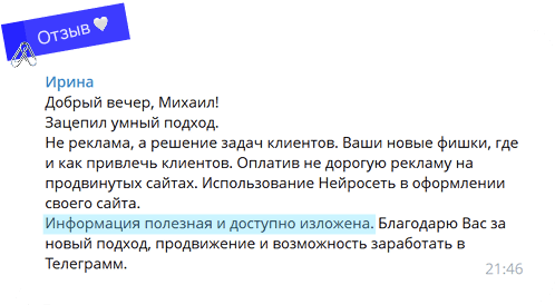Результат: Узнали, что телеграм — та самая площадка, где деньги приходят реально быстро. Достаточно контента, который сам себя продаёт, и всё, никаких сторис и рилсов не нужно. Ваш личный бренд делает всю работу за вас.